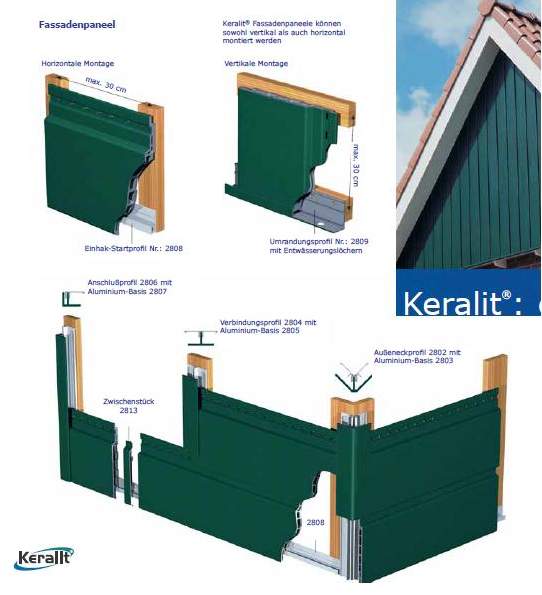Vorhangfassaden Keralit Paneele - für waagerechte ,diagonale und senkrechte Verlegung geeignet