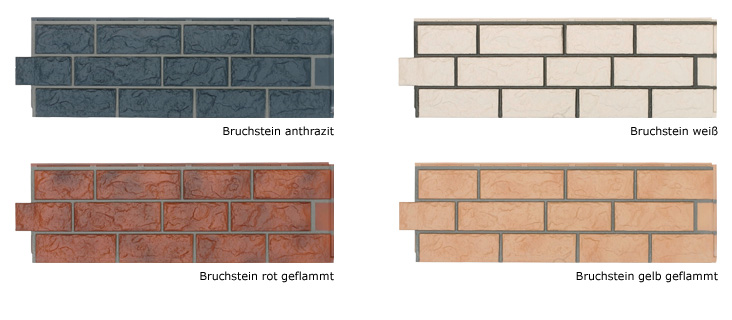 Vorhangfassaden Zierer Bruchstein - in 4 Farben lieferbar:weiß, anthrazit, gelb-geflammt, rot-geflammt